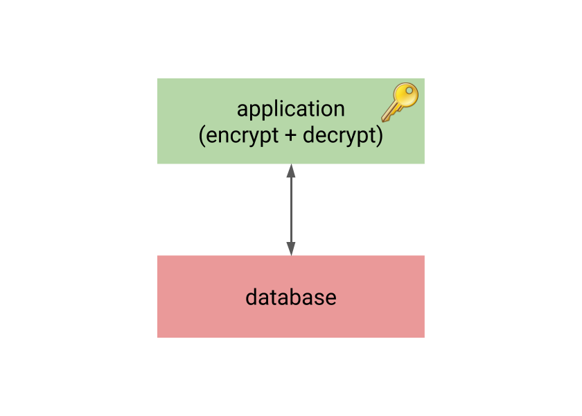 So let’s start with the application-level encryption, but let’s add another component to the system, performing the important operations on encrypted data on behalf of the database.