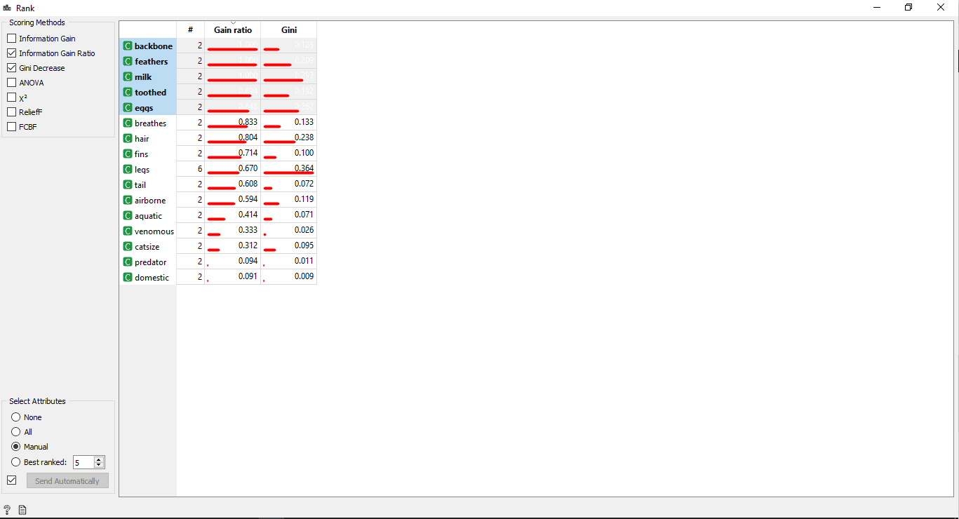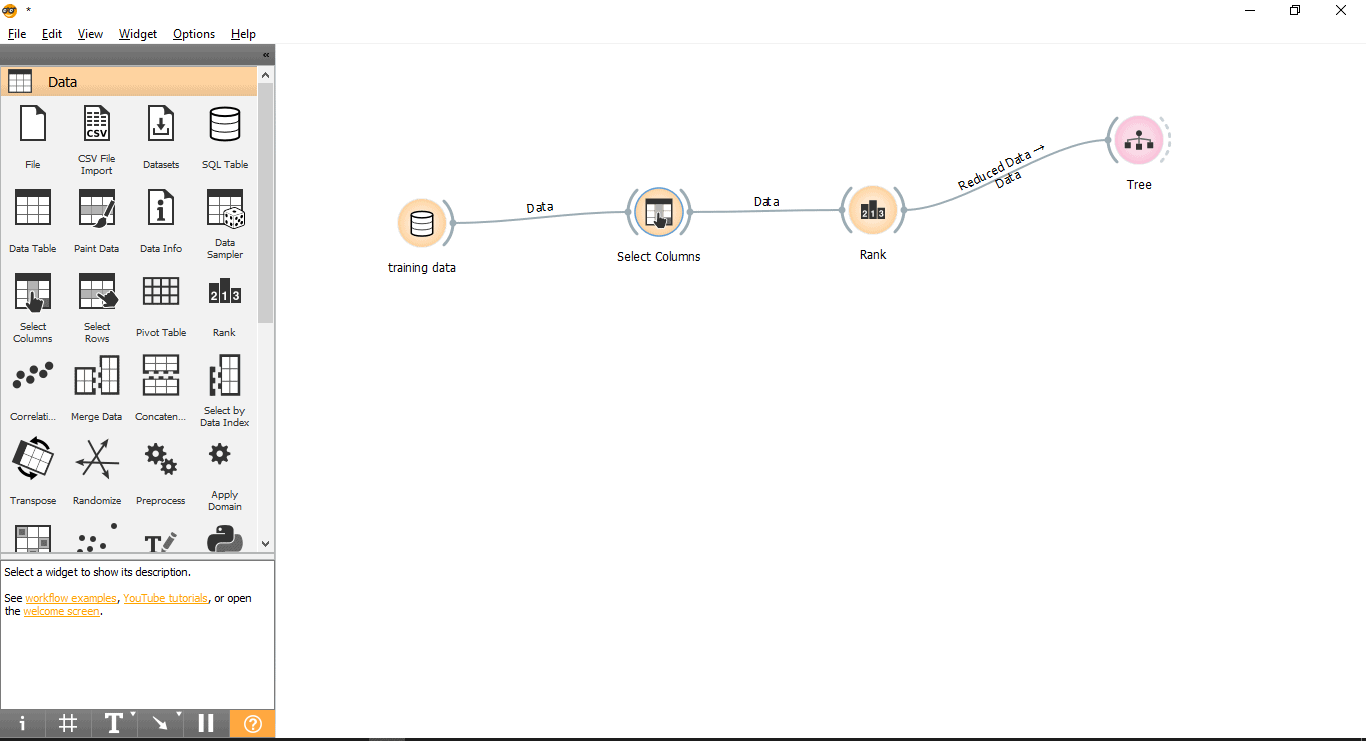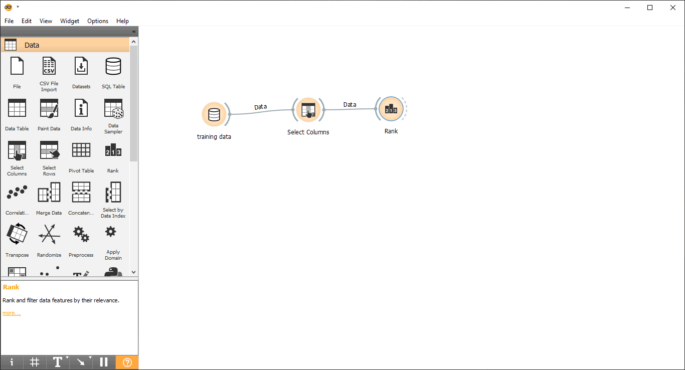 - Double click on the Rank widget to see the most related columns in the training data table. It will select the top 5 columns by default.