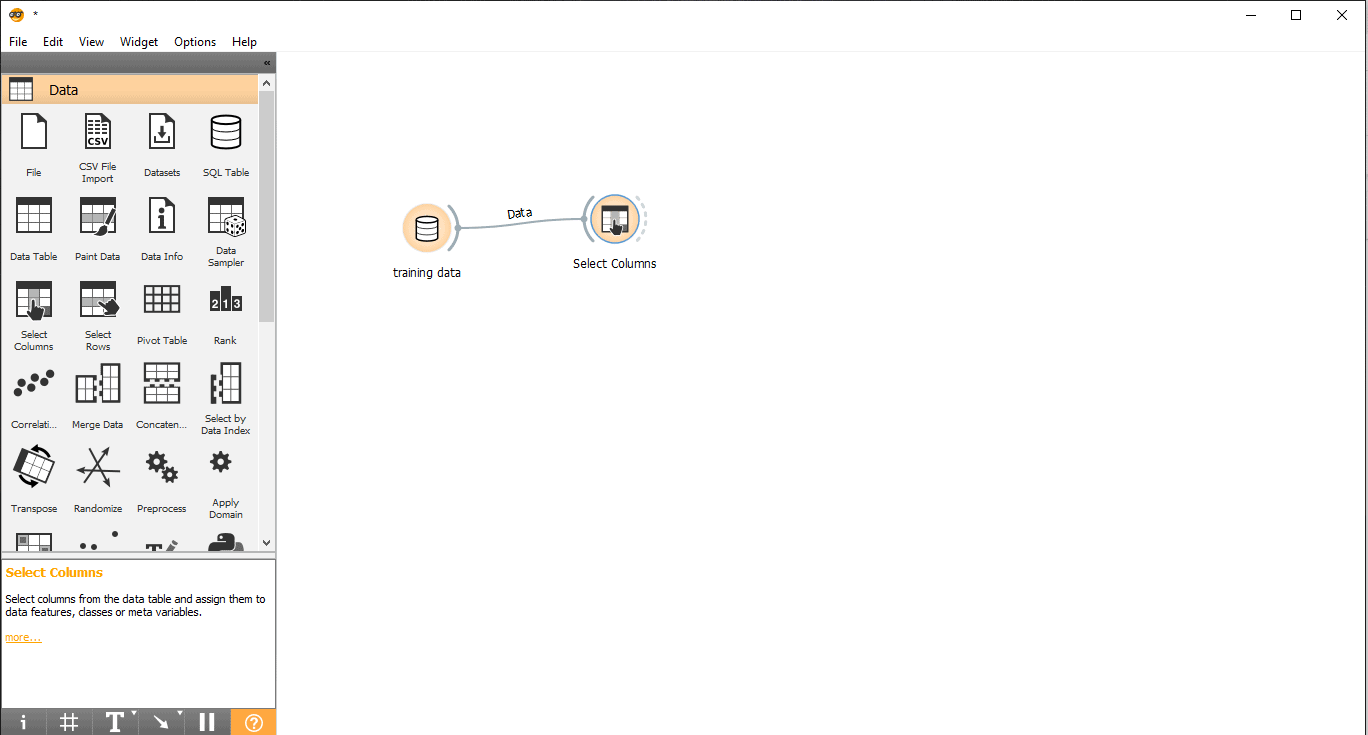 - Drag and drop the Prediction widget from the Evaluate menu.