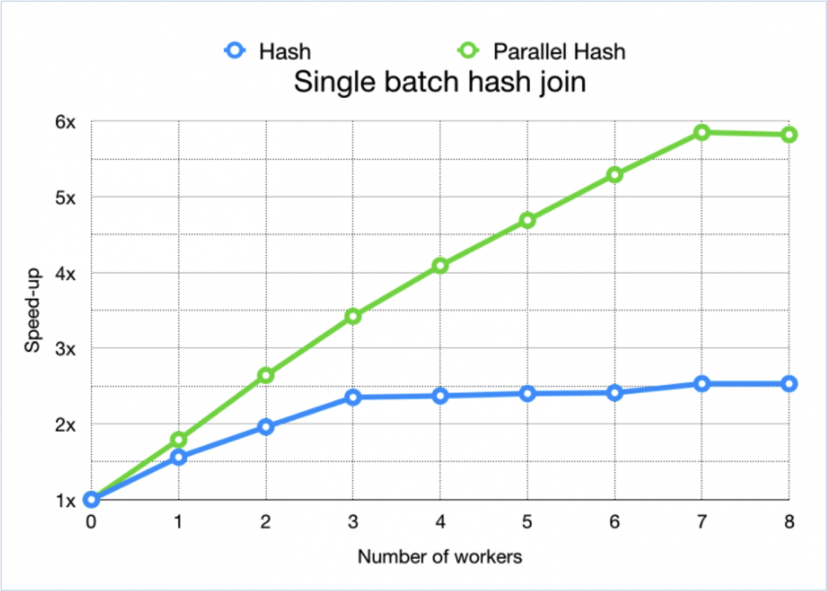 - In general, there is no way to know how many processes will show up to execute the join or when. I had to come up with a way to make it so that work would begin as soon as one process started executing the join, but any number of other processes could join in the effort later. While this is also true of every other parallel-aware executor node (for example Parallel Sequential Scan and Parallel Bitmap Heap Scan), in the case of Hash Join this was much more difficult because of the many states or phases the operation can be in when a new process shows up.