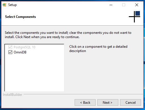Postgres Installer comes bundled with OmniDB, as an optional package that can be selected during the installation process, shown in the screenshot below (this screen will show in the third step of the Postgres installer installation process). To view the complete process, please go through this step-by-step installation guide.