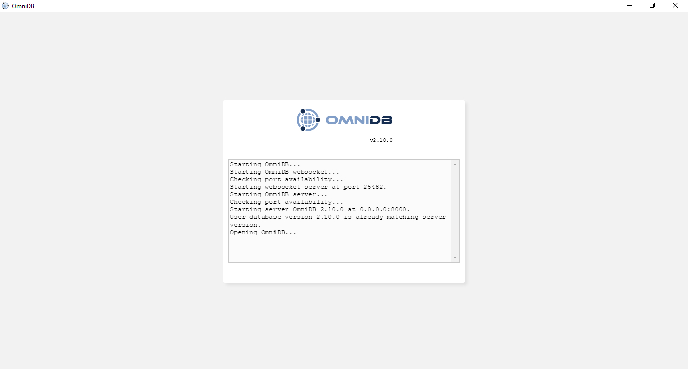 Once the installation process is complete, launch OmniDB. This step varies on different platforms and can be viewed in the “README” file that opens up right after the installation. I will be demonstrating the process on Windows.