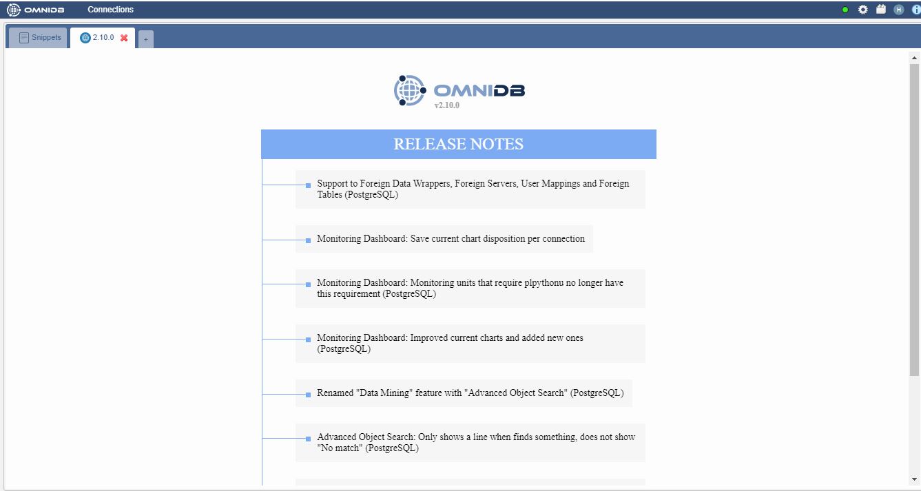 The latest Postgres Installer release includes support for OmniDB – an interactive and user-friendly database management tool to manage multiple databases in a unified workspace.