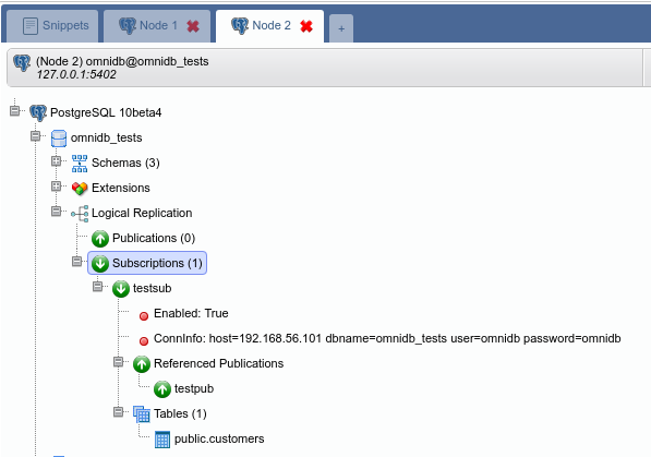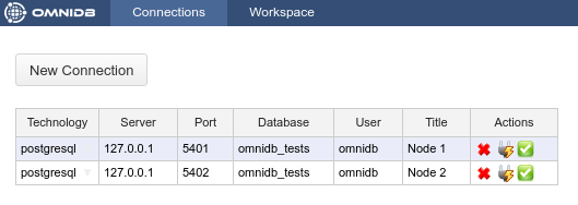 psql -c "CREATE DATABASE omnidb_tests"Assuming you have OmniDB (server or app) installed in your host machine, you can connect to the coordinator in order to test the connection. In OmniDB, create a connection like this: