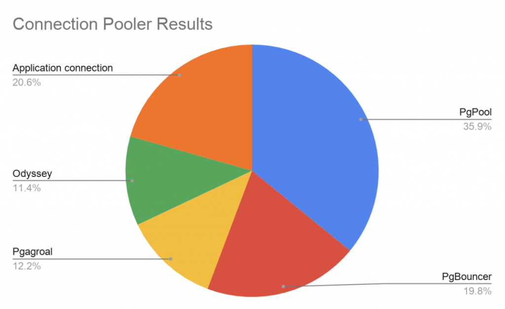 Connection poolers are very useful for applications. It reduces the cost of making new connections every time an application needs interaction with the database. Also, it helps in reusing the established connection without adding the overhead of idle connections to the database. 35.9% of responders said that Pgpool is used in their organization for PostgreSQL high availability architecture, followed by application connection pooler (20.6%), PgBouncer (19.8%), Pgagroal (12.2%), and Odyssey (11.4%). It is worth noting that 7.4% of responders chose both Pgpool and Pgbouncer as their choice. It’s quite common to use both together, using PgBouncer to provide connection pooling, which in turn talks to a Pgpool instance that provides high availability and load balancing.