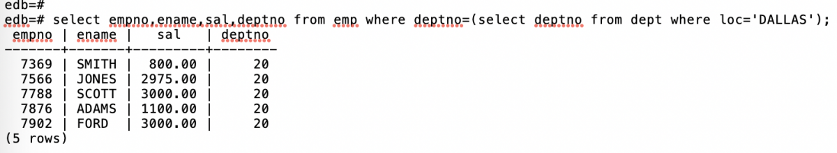 WHERE e.deptno=d.deptno AND e.deptno IN (10,30);